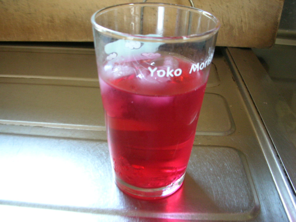 水で薄めていただきます。とてもきれいな色です。さわやかな夏の飲み物です。来年の夏にはお店で出したいです。