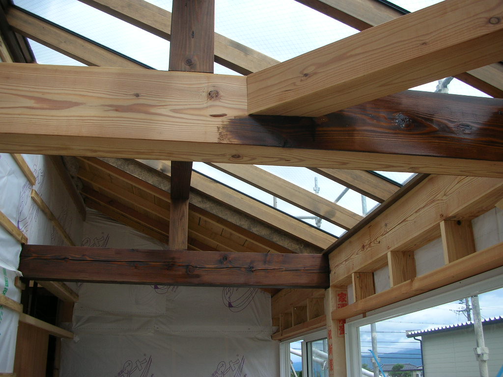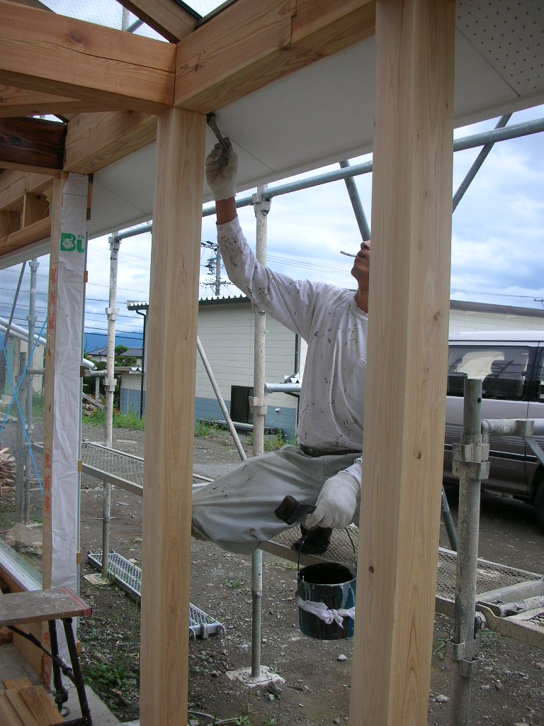 頭上の梁も塗ります。
