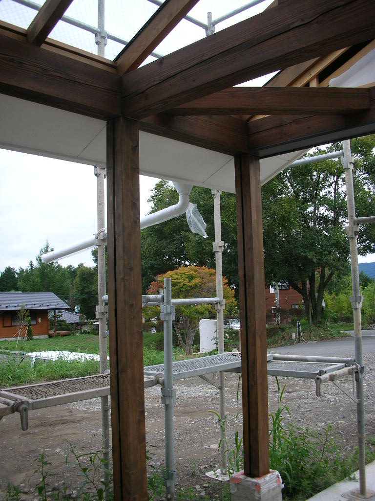 こんな感じ。この柱は「見せる」柱なので、乾いたらまた周りを紙で覆って保護します。