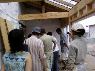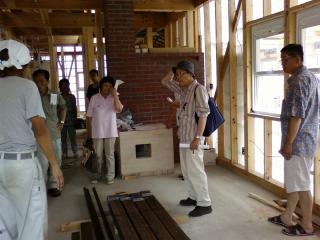 本日も外壁張り。そんな中地元西箕輪の方が7名見学に来て下さいました。