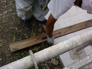 外壁はただ張ればいいのかと思っていましたが、 サッシやらなにやらに接するところは小細工をして張ります。 8/5の記事にある斜めに切る作業は序の口です。 例えば、コンセント 軒の出っ張りにあわせるには、 全てのサッシまわりでこのような作業をやります。 まっすぐ張る分には時間がかかりませんが、この小細工をやっていると気が遠くなるほど時間がかかります。大工さんは本当にすごいと思う日々です。 胴縁も
