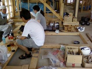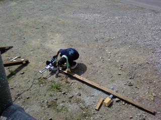 しかし、雷の影響で停電が・・・ スライドソーも丸鋸も、エアコンプレッサーに繋いで使う道具も電気がなければほぼ全滅。手鋸や充電式のインパクトに変更して作業をしましたが、当然作業効率はがた落ち。昔の人はつくづくすごいと思いました。電気系の便利道具がなければ、幾らお金がなくても自分たちでやろうとは思わなかったでしょう。と言うよりもやれませんね。 先生もカイロの施術の予約が入って早上がりしたのに、すぐ戻ってきました。停電で患者さんが職場から帰ることが出来ず、施術は中止に。どこもかしこも大変です。
