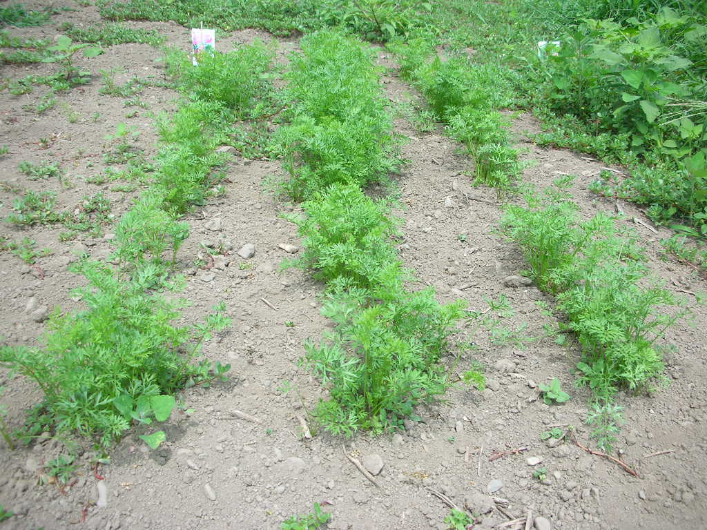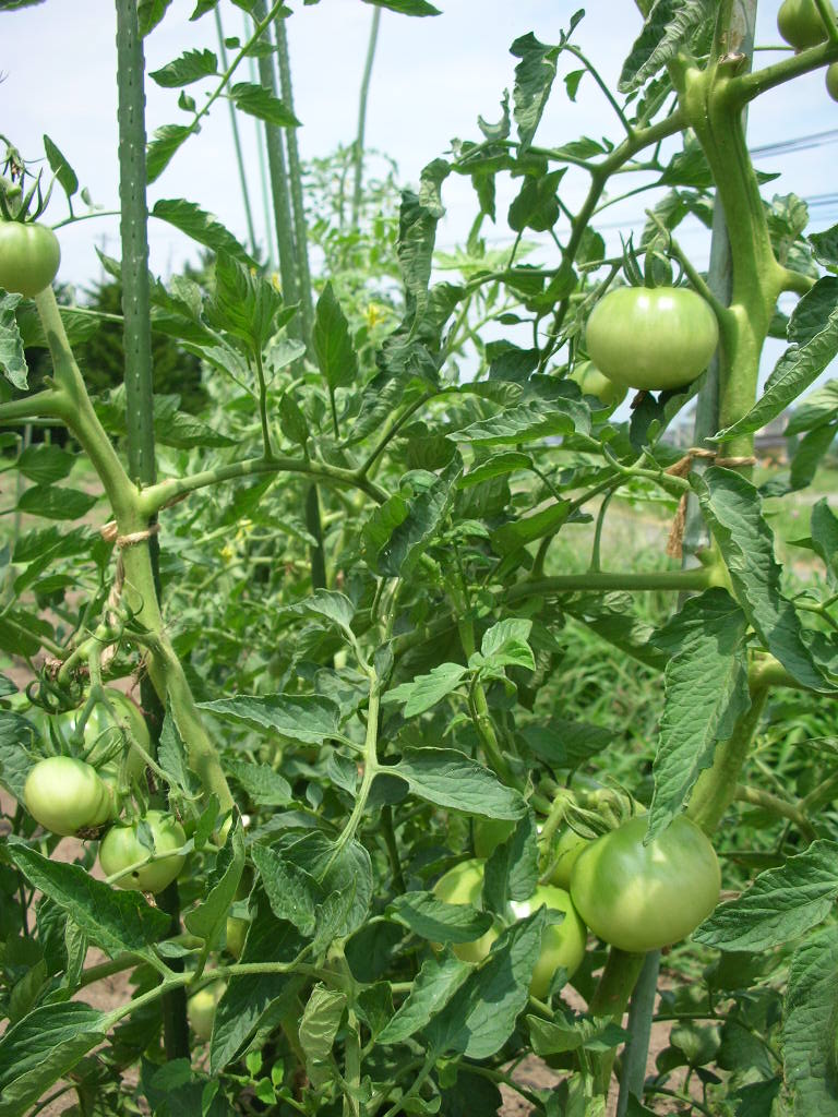 と思ったら、劇的変化が起きていました。 トマトはかなり大きい実がついていました。 ナスは花が咲き、これから実がなる様子。 レタスは4株植えたはずが1株しか残らず、もうだめか?と思って いましたが、わりとふさふさと葉が出てきています。1枚ずつ ちぎっていけば長い期間おいしくいただけるので、レタスの種類 ではサニーレタスが使いやすいと思われます。 ズッキーニ。きゅうりに見えます。 オクラ。昨年オクラがなっている様子を見たとき、かなり衝撃的な 光景でした。ご存じない方は、収穫時をお楽しみに。 サラダ用ミニ人参。種まきが雑だったので、結構広範囲に生えて きて畑を賑わせています。 十分育つようまねき(間引き)ます。摘んだまねき菜も食べられます。 明日はトマトが収穫できそうです。自家製トマト第一号です。 そのうちコンポストも設置しようと言っています。