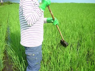 毎日忙しく飛び回っていて、夜も仕事やら何やらで空いている日のほうがめずらしい・・・ 今日は、田んぼと畑で草と闘った。 実は今日は、もはや田車やデッキブラシでは、埒があかないくらい育った草を手で取る作業だったのだが、そうなると全く写真が撮れないので、以前撮った写真で田車とデッキブラシの解説。 手で草を取るのは、とても時間がかかって大変。人海戦術で乗り切るしかない。除草体験希望者大募集!君も一緒に田んぼらーになろう! ついでに誰か、はいつくばって草を取っている姿を撮影しに来て下さい。 里研の田んぼの横の水路は、今隠れた蛍の名所になっています。毎晩誰かしら見に来ているそうです。お近くの方は、ぜひご覧あれ。これが農薬をがんがん使っている田んぼの横なら、こうはいかないはず・・・ いずれ蛍の写真も。素人では、撮るのが難しいようですが。