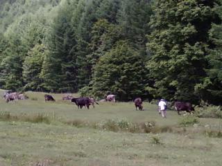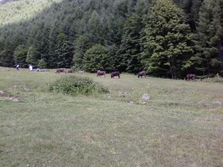 酪農ヘルパーをやっている友達の案内で、 松本市奈川の清水牧場に行くツアーを開催。 参加の皆様お疲れ様でした。 清水牧場では、日本ではあまりない放牧での酪農をやっています。 チーズに適した牛ということで、あの白黒のホルスタインではなく、 ブラウンスイスという牛を飼っています。 日本では、生産性と言う観点から、繋ぎ飼いが主流になっているようです。 経済性ばかり追求していると、牛も人間も大事にはされませんね。 案内してくれた酪農ヘルパーの友人の夢は、伊那で放牧の牧場を運営することです。 それが実現したら有報堂でその牧場の乳製品を出したいものです。