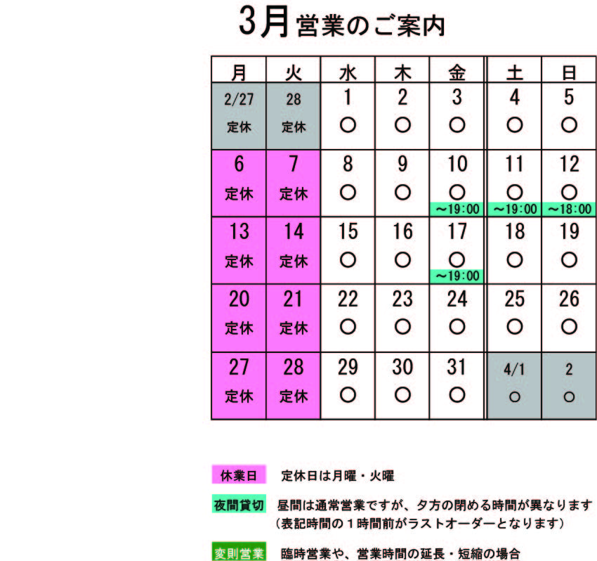 営業カレンダー