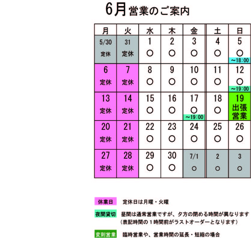 営業カレンダー