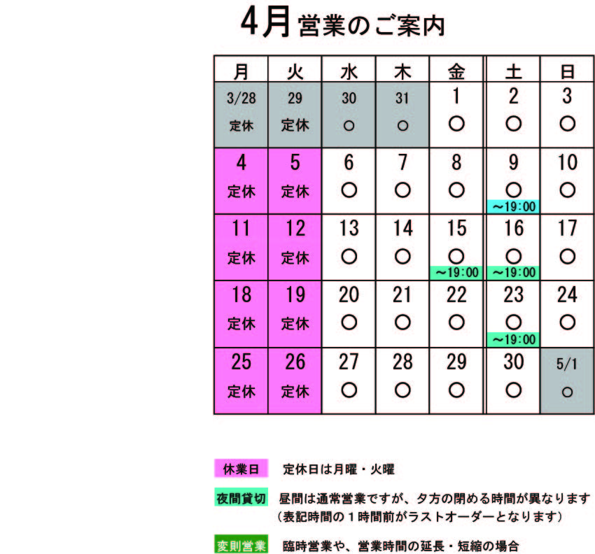 営業カレンダー